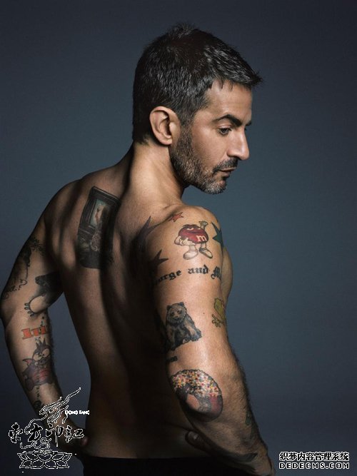 马克雅各布,俗称“小马哥”,但凡混迹于时尚圈的人,几乎没有人不知道他的名字,其曾为LV, Chanel等众多品牌担任设计总监,更有自己的专属品牌!不同于同样是设计师的老佛爷的毒舌和刁钻,小马哥十分平易近人、接地气,并且还酷爱纹身! 据纹身爱好者透露,小马哥貌似是诸多设计大咖中唯一一个在身上纹身的人,而其身上的纹身图案也十分有看头,不管是动物纹身,电影角色,英文单词,小马哥都照收不误,而之所以如此来者不拒其根本原因也是喜欢纹身艺术吧! 当然,如此花花绿绿的纹身图案,也曾让不少粉丝们调侃:待小马哥变老时,看到松弛的皮肤上,枯萎的纹身图案,将作何感想呢?