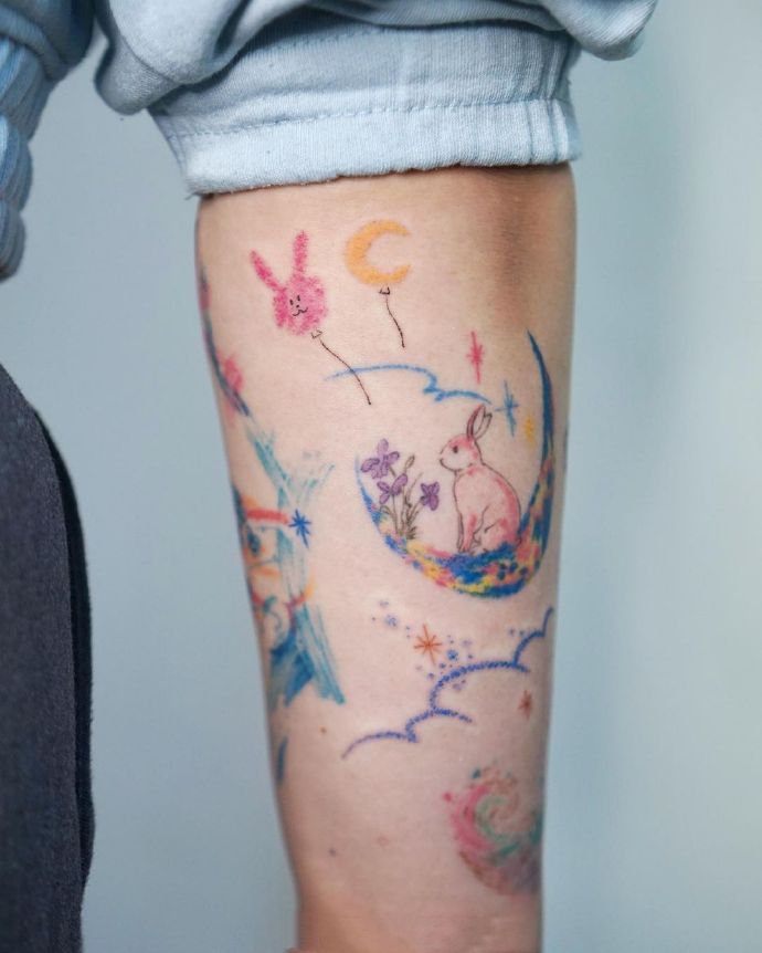 图腾描画到人造皮上来练习了。可以先铺在桌上练,然后包裹到可乐罐上练。如果要更精确的线条,可以用转印纸把图案描一遍拓印到人造皮上。这样可以同时练习拓印图案的精确度。因为除非你是画画大师自认在人体上徒手画也能做出好的纹身,否则都建议用拓印来转印图案到人体上,这样做出来的纹身才会精细、漂亮。把图案拓印上人造皮就可开始练习了。这时可以练习到的是图案轮廓的精确勾勒和颜色的填充。先把轮廓割完,然后开始填充颜色。颜色的填充不宜大面积的进行,这样会造成填色不均匀然后下意识的同一色块多次的填充。如果是真实的纹刺,多次的同一部位的上色会造成严重皮损,恢复之后的效果差,有时还会出现纹刺部位疤痕性突出。所以填色是最好是一小部分一小部分的画圆圈方式填充,面积控制在一厘米内,画圆圈的填充方式可以使前面填。