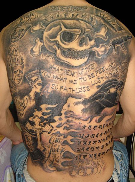 满背骷髅十字架经文纹身图案