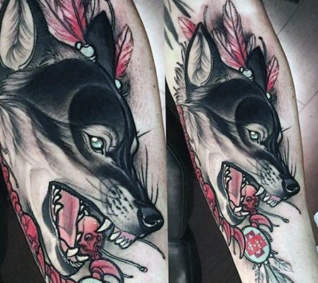 张着大嘴的黑色狼3D纹身