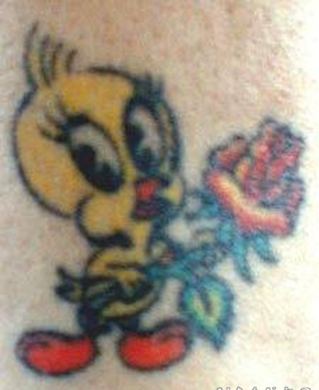 小鸟与花朵彩色卡通纹身图案