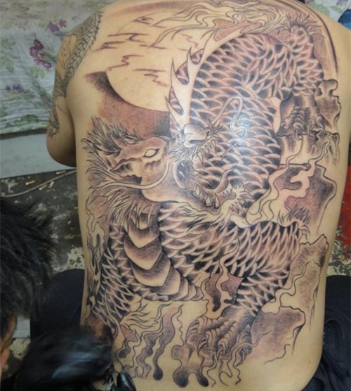 黑灰满背纹身图案
