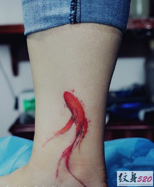 • 水彩小腿金鱼纹身图案