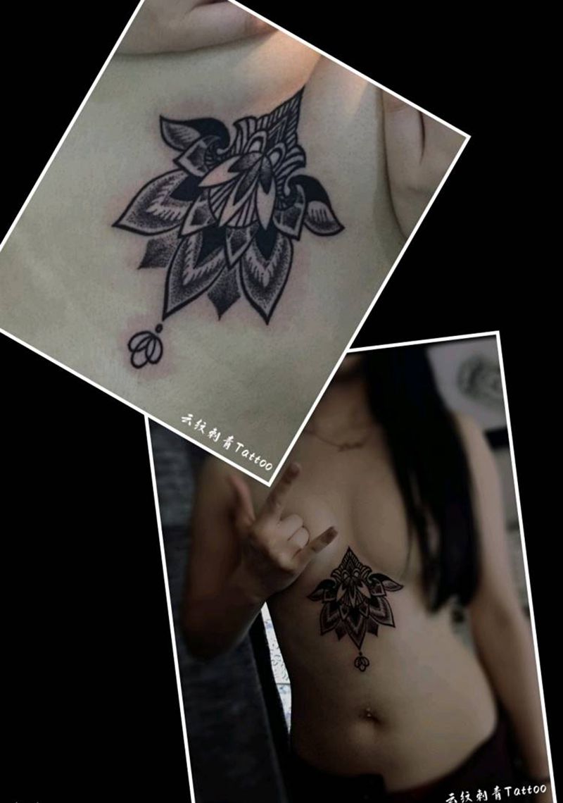 花纹身图片_肩部胸部纹身图案