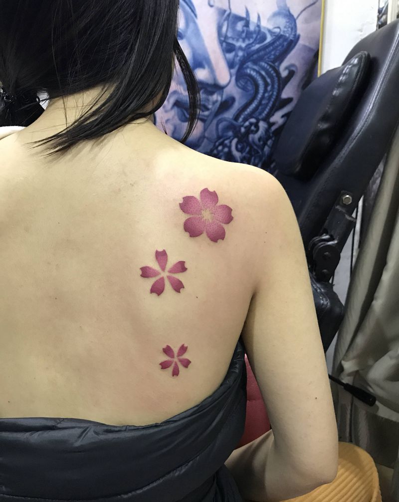 素花纹身图片_颈部素花纹身图案