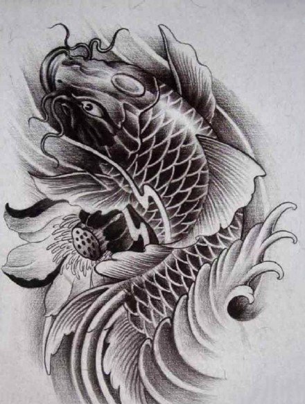 传统鲤鱼纹身图案手稿
