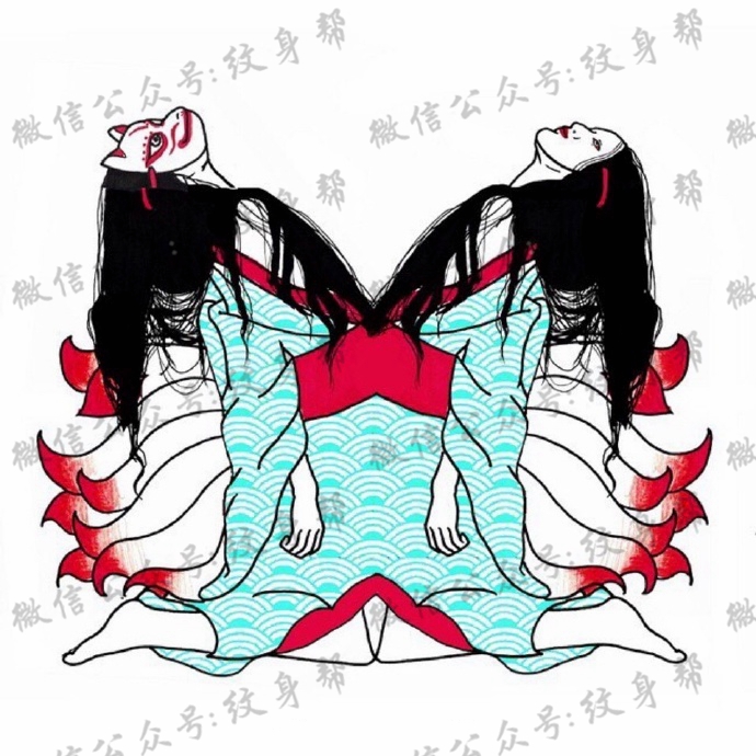 能面万媚纹身手稿_52张日式能剧面具纹身手稿图案素材欣赏