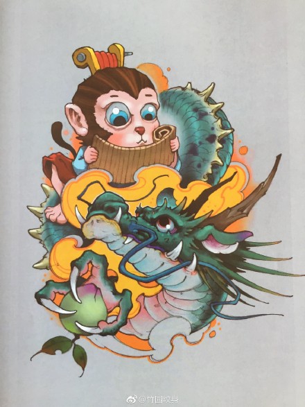 • 一组卡通school风格的彩色纹身手稿欣赏