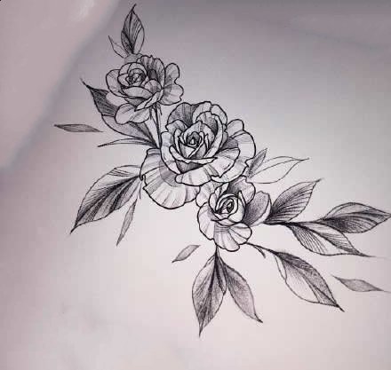 • 一组适合小臂等位置的小黑灰玫瑰花朵纹身手稿
