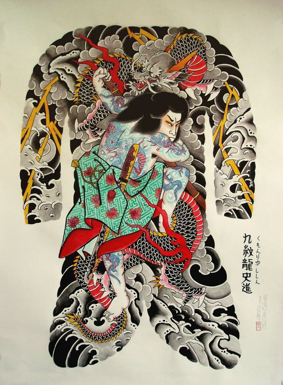 • 9张彩色全胛大满背纹身手稿图案赏析