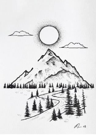 • 27组点刺山水风景纹身手稿图片
