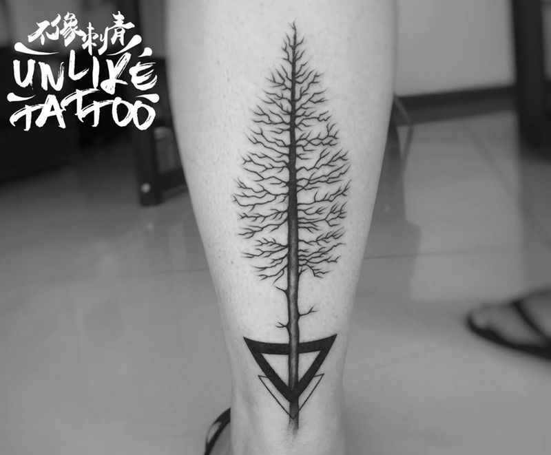 向死而生纹身图片_成品手稿腿部欧美清新写实线条点刺原创纹身图案