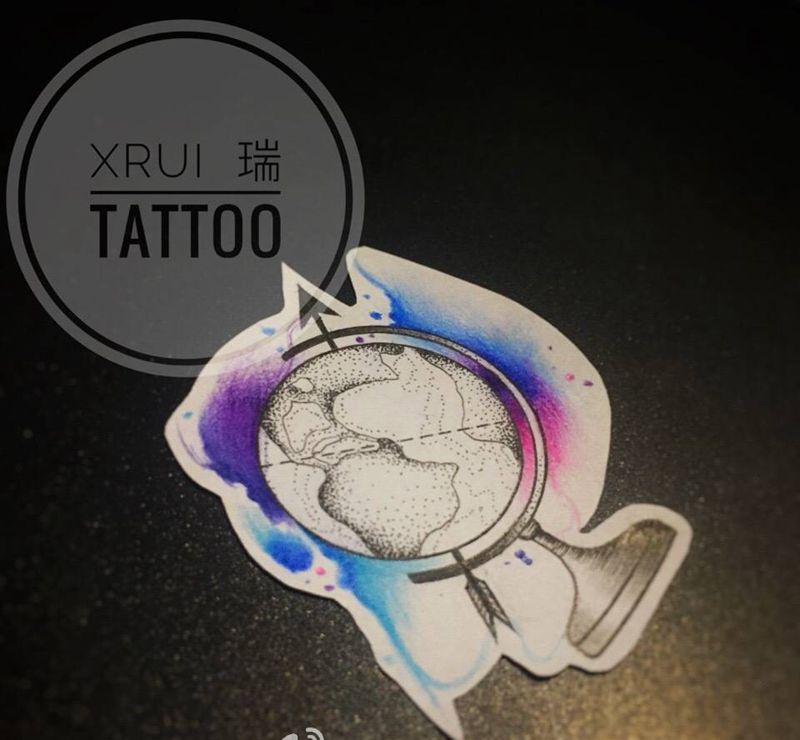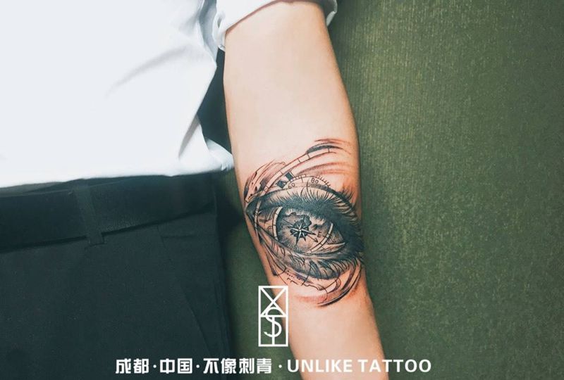 指南针 客人自带纹身图片_成品腹部欧美清新几何字符纹身图案