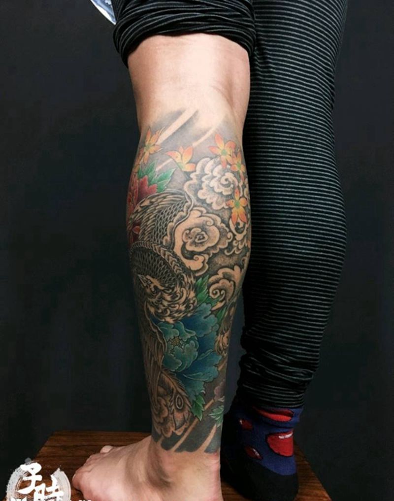 • T网红王老大花腿龙纹身图片_腿部新传统纹身图案