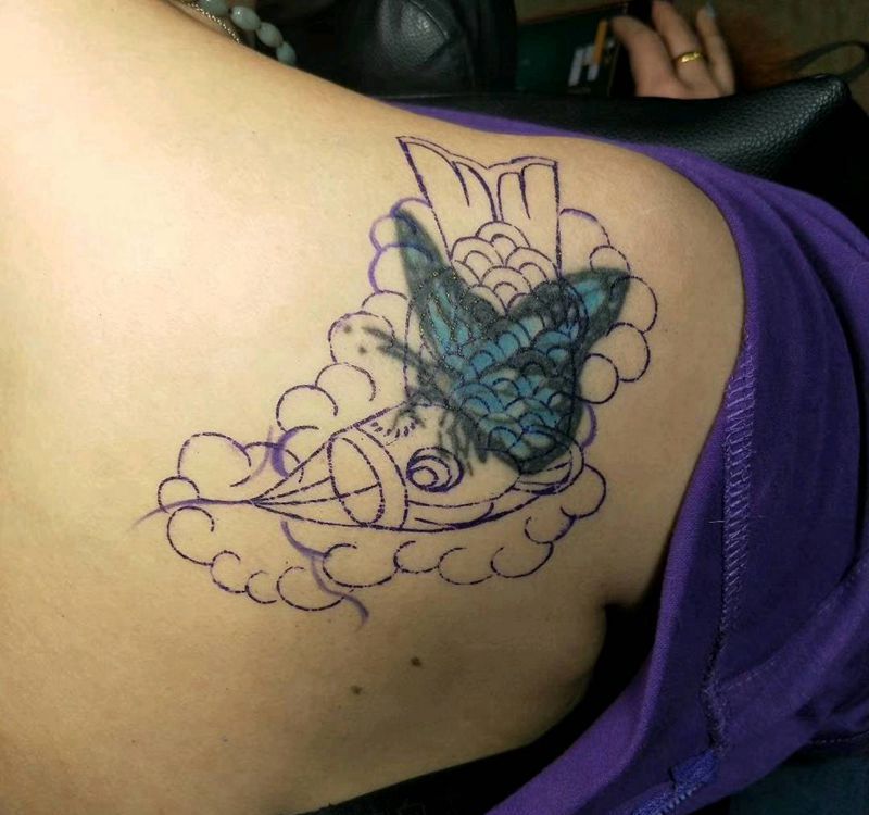 遮盖纹身图片_肩部传统动物原创成品纹身图案
