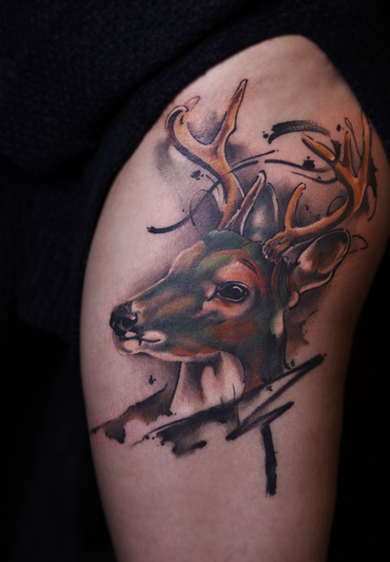 当前位置: 首页 >北京市纹身店-翛刺青纹身图案>林深见鹿纹身图片_腿部欧美写实水墨纹身图案