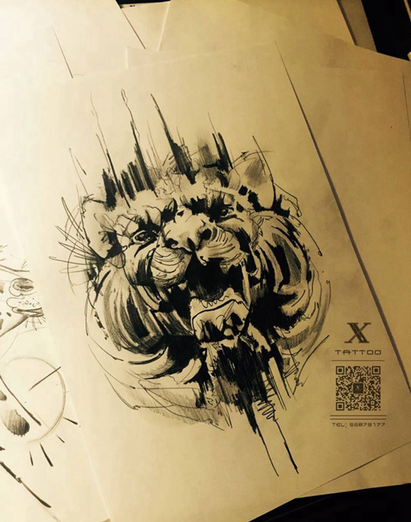 • H老虎纹身手稿图案大全