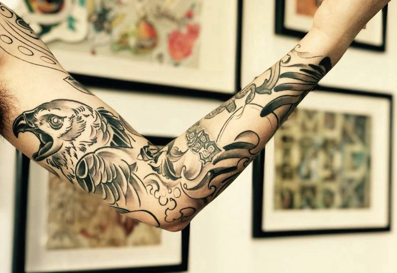 当前位置: 首页 >北京市纹身店-翛刺青纹身图案>花臂纹身图片_手臂欧美传统鬼神原创纹身图案