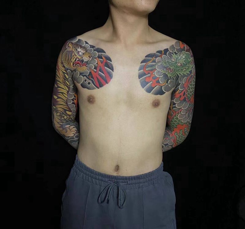 • T云龙九郎纹身图片_背部老传统云龙九郎纹身图案