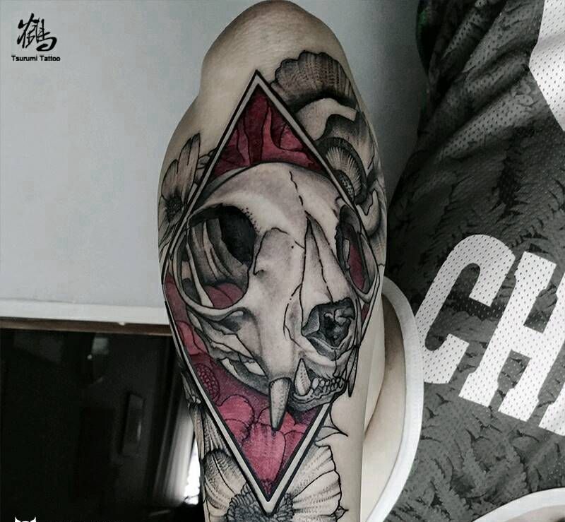 当前位置: 首页 >北京市纹身店-鹤见刺青処纹身图案>【头骨&花花】纹身图片_手臂欧美习俗清新写实动物植物成品纹身图案
