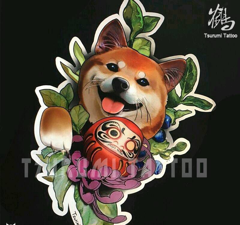 鹤见私人定制原创刺青【柴犬】纹身图片_手臂肖像清新写实动物植物原创成品手稿插画纹身图案