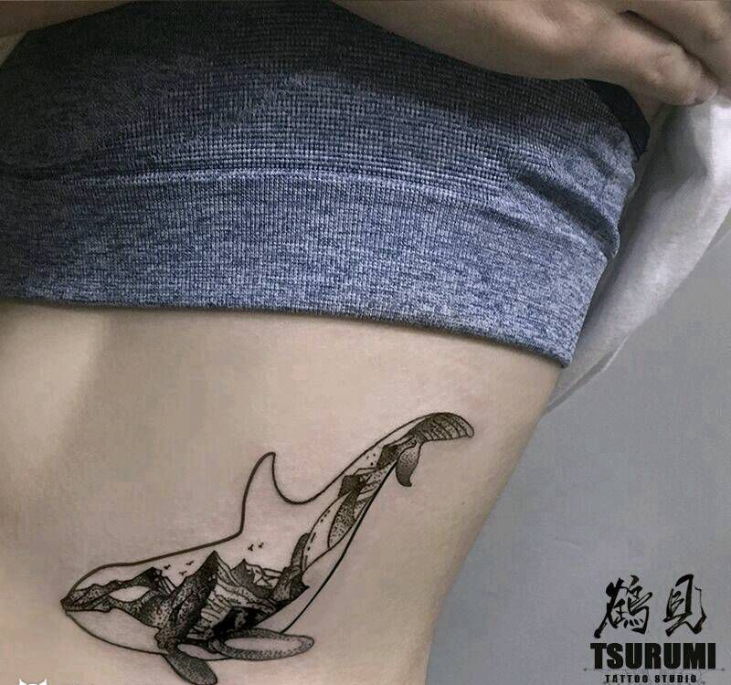 当前位置: 首页 >北京市纹身店-鹤见刺青処纹身图案>鹤见原创私人定制刺青【虎鲸】纹身图片_腰部清新原创成品手稿纹身图案