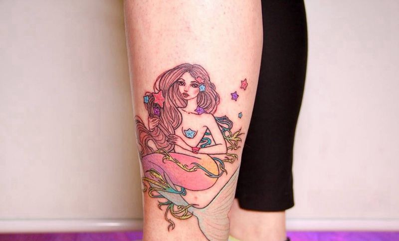 当前位置: 首页 >北京市纹身店-MDZ STORE流行文化体验店纹身图案>美人鱼纹身图片_腿部New School纹身图案