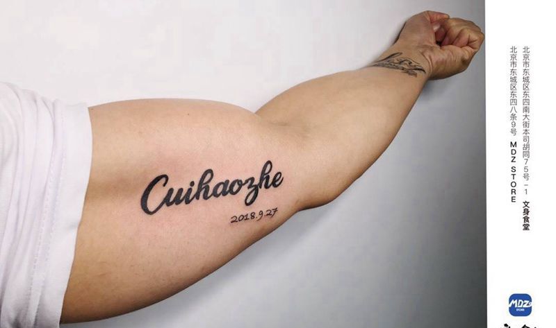当前位置: 首页 >北京市纹身店-MDZ STORE流行文化体验店纹身图案>纪念纹身图片_手臂花体字纹身图案