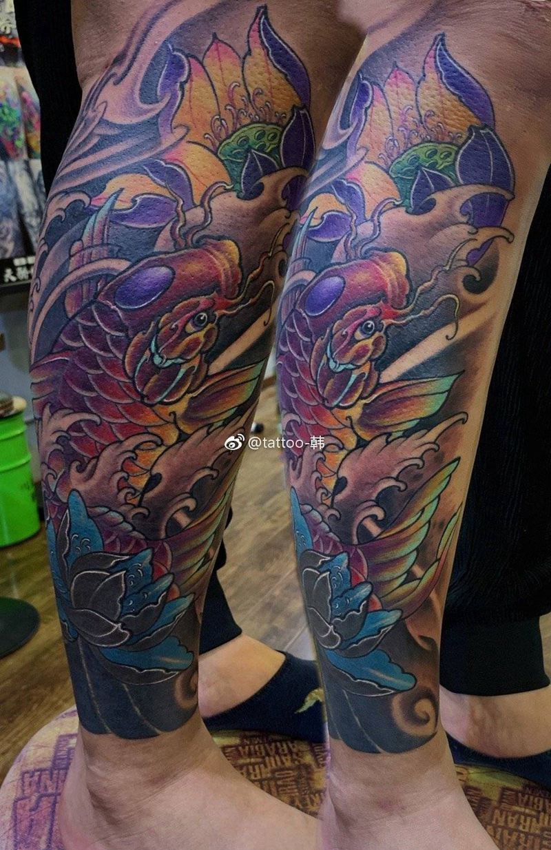 • T网红王老大花腿龙纹身图片_腿部新传统纹身图案