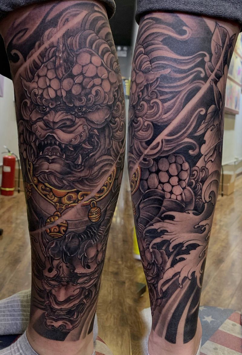 • T网红王老大花腿龙纹身图片_腿部新传统纹身图案