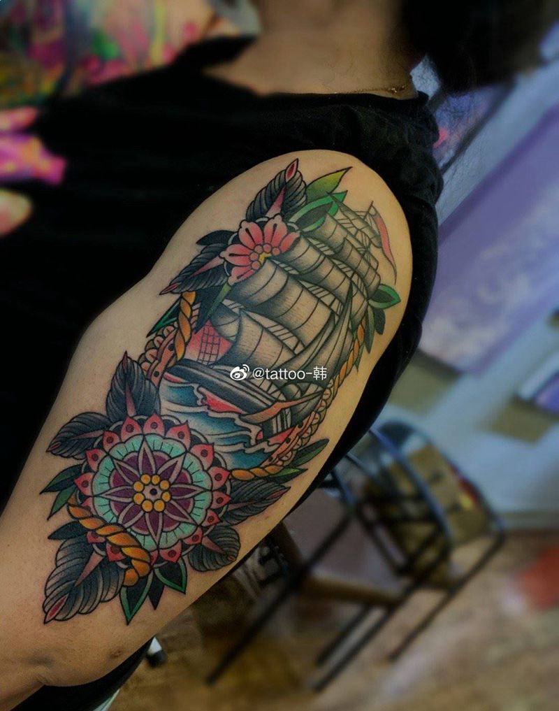 当前位置: 首页 >北京市纹身店-钦匠刺青纹身图案>帆船纹身图片_手臂Old School纹身图案