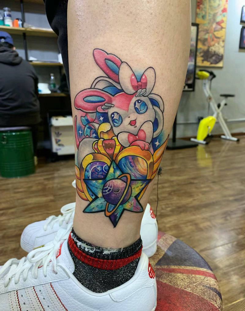 • T网红王老大花腿龙纹身图片_腿部新传统纹身图案