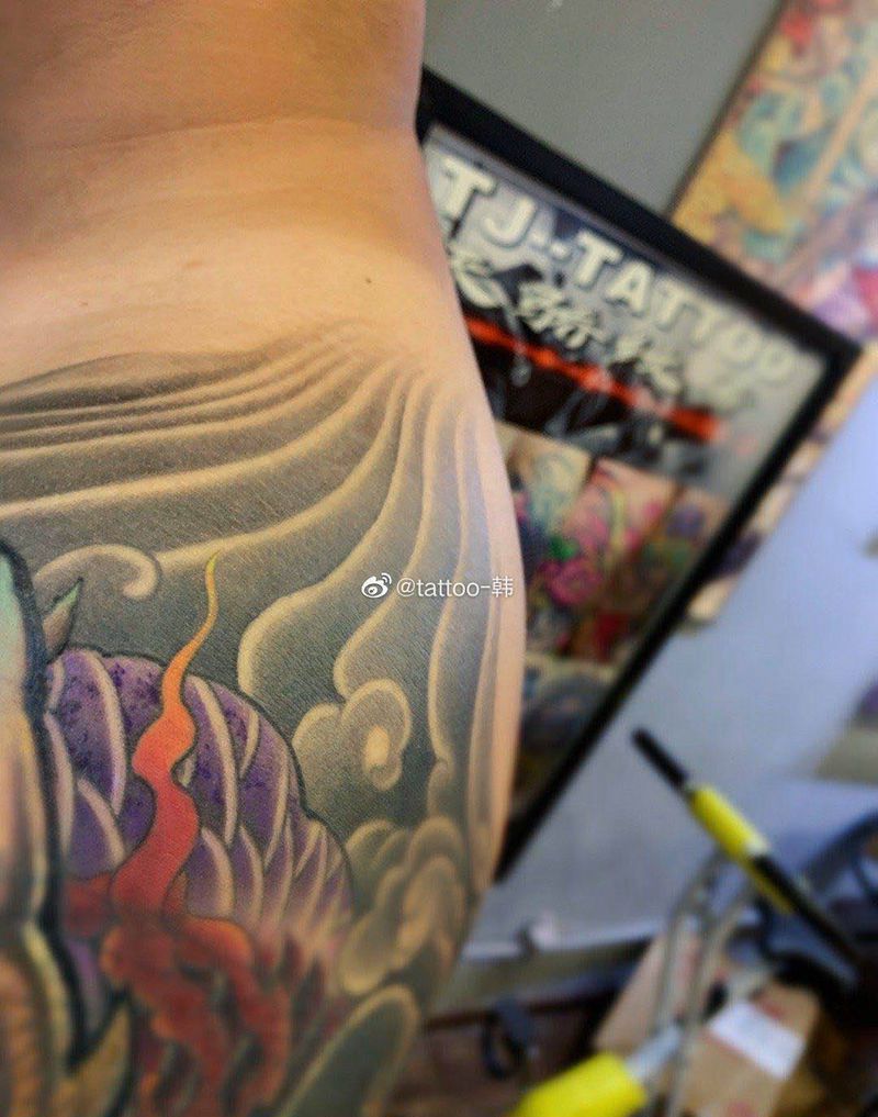 • T网红王老大花腿龙纹身图片_腿部新传统纹身图案