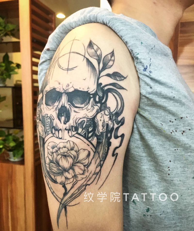 骷髅纹身图片_手臂New School骷髅纹身图案