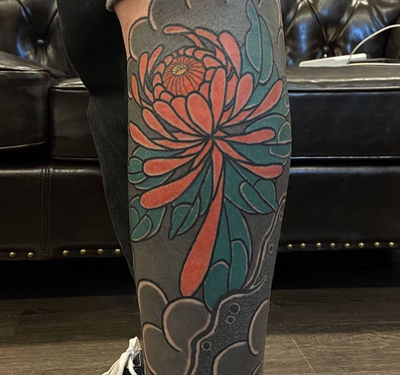 当前位置: 首页 >北京市纹身店-穹 tattoo studio纹身图案>传统菊花小腿纹身图片_腿部老传统纹身图案