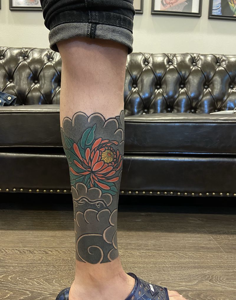 当前位置: 首页 >北京市纹身店-穹 tattoo studio纹身图案>传统菊花小腿纹身图片_腿部老传统纹身图案