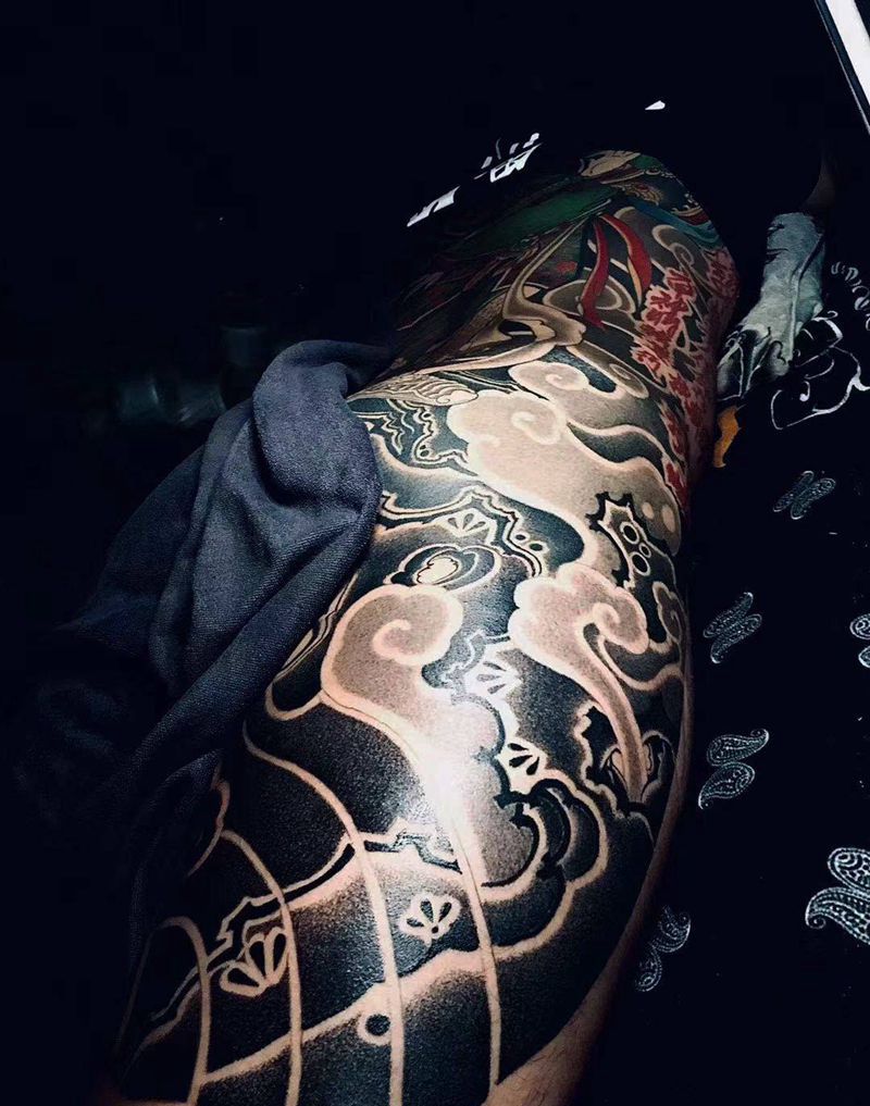 • T网红王老大花腿龙纹身图片_腿部新传统纹身图案