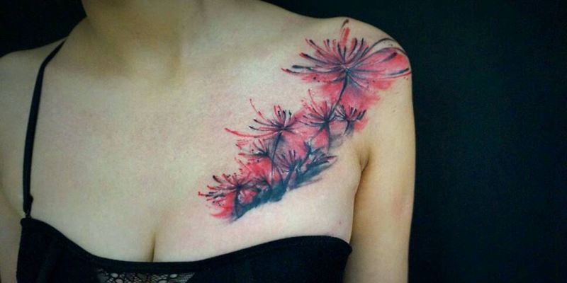 彼岸花遮盖失败纹身纹身图片_肩部欧美植物成品纹身图案