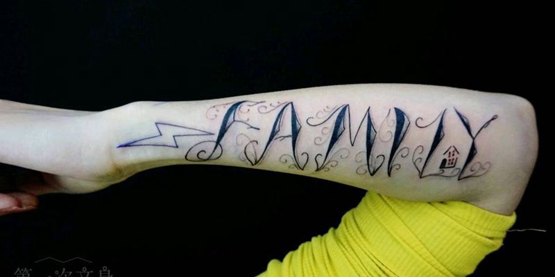 family纹身图片_肩部胸部腰部背部手臂腿部欧美字符花体字成品纹身图案