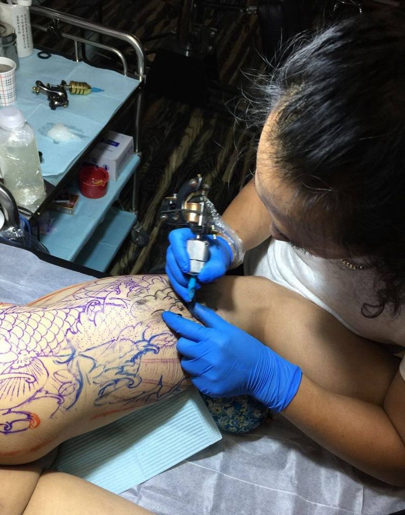 京都墨客刺青徐老师作品纹身图片_成品臀部手稿动物原创写实国画传统腿部腰部纹身图案