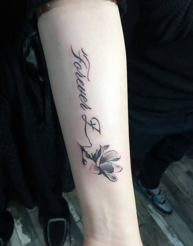 当前位置: 首页 >北京市纹身店-京都墨客刺青纹身图案>情侣纹身图片_手臂成品字母荷花清新情侣纹身图案
