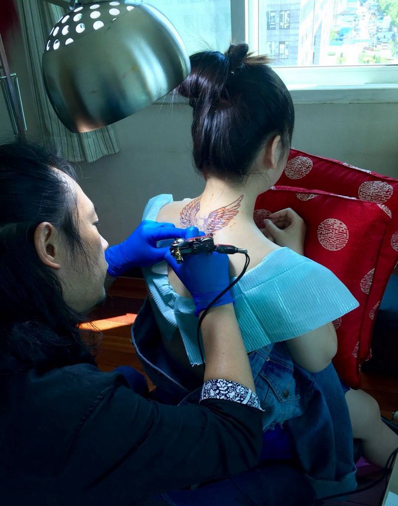 京都墨客刺青-徐老师纹身图片_成品肩部清新纹身图案
