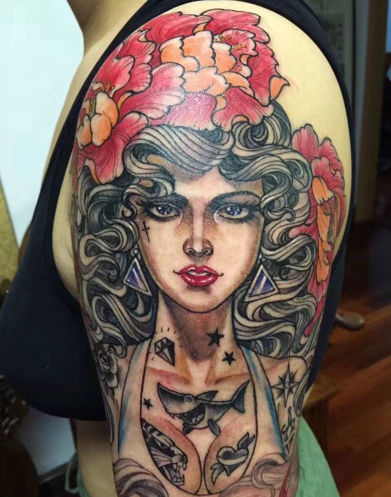 京都墨客刺青-BOSS作品纹身图片_原创成品手稿手臂欧美写实人物纹身图案