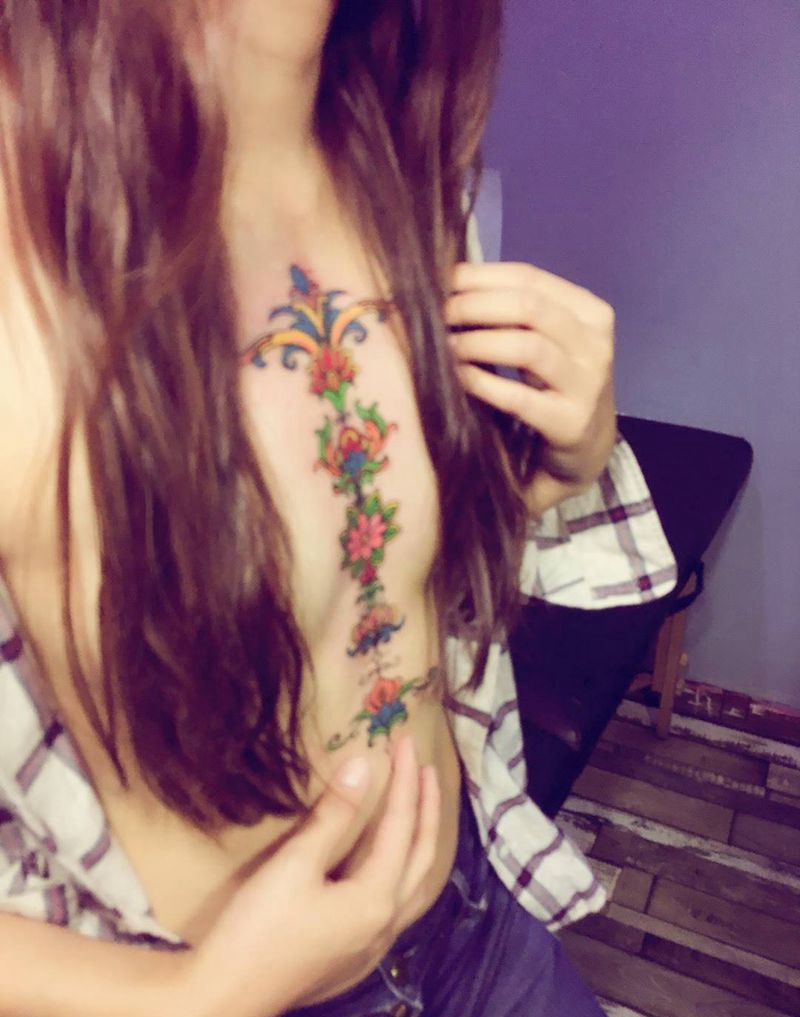 • 女性大花胸纹身_43张霸气漂亮的女性大花胸纹身图案作品
