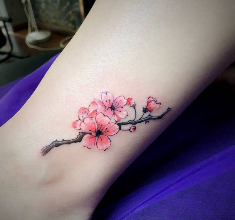 京都墨客刺青纹身图片_成品腿部脚部原创贴纸清新植物纹身图案