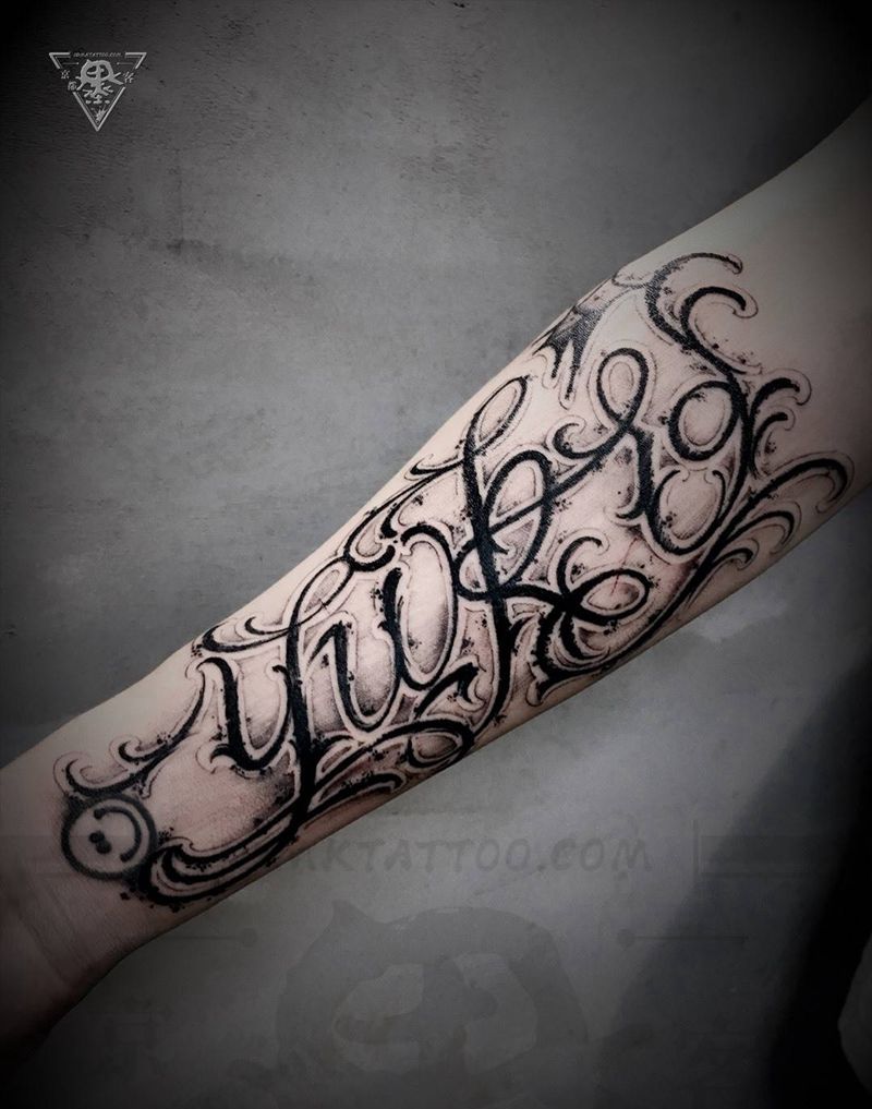 京都墨客刺青纹身图片_手臂花体字纹身图案