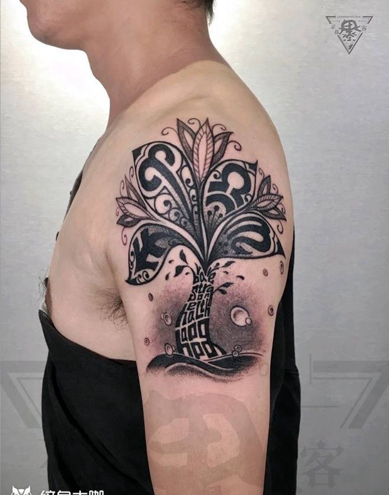 当前位置: 首页 >北京市纹身店-京都墨客刺青纹身图案>纹身/刺青纹身图片_手臂New School花体字设计树纹身图案