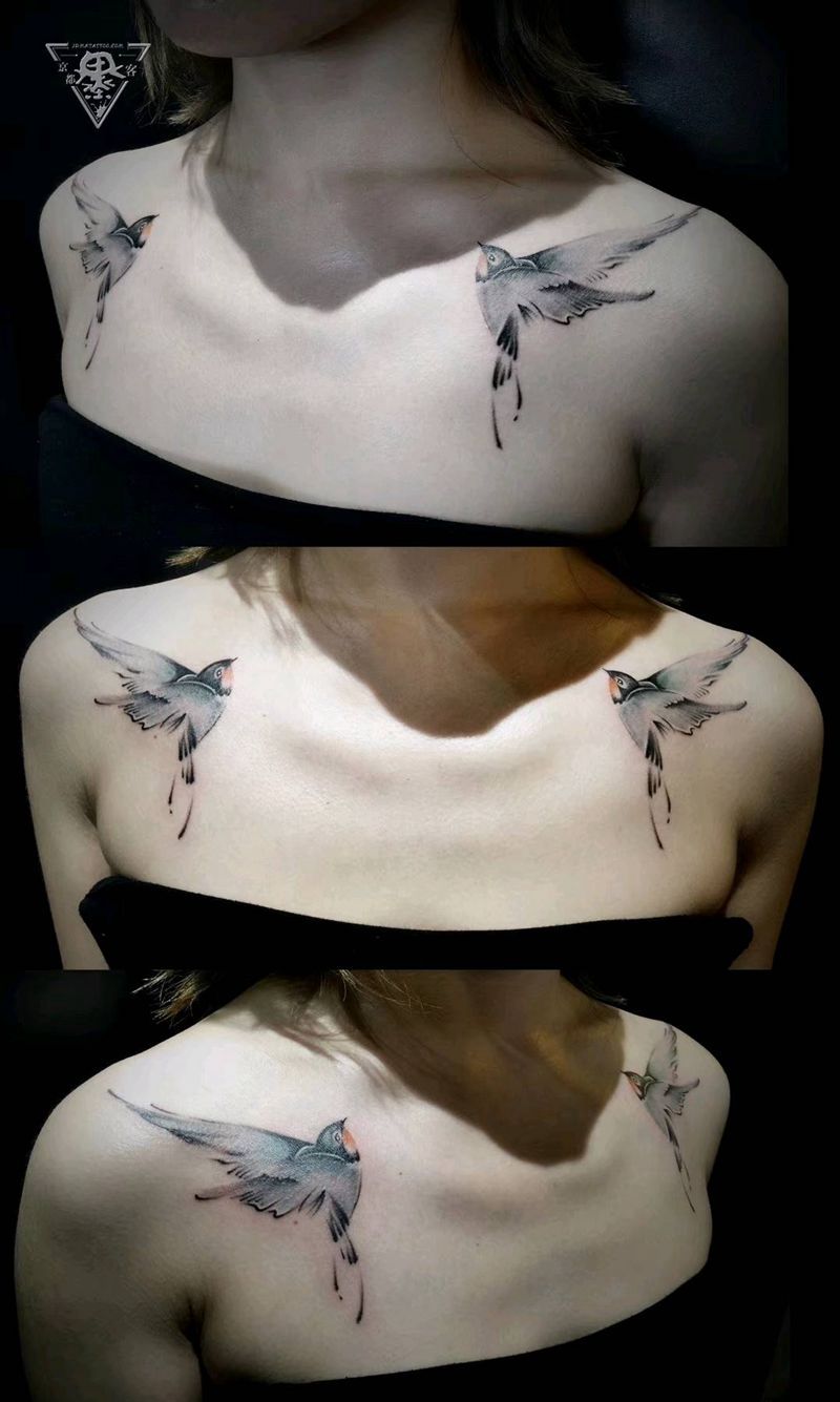 纹身/刺青/燕子纹身图片_胸部肩部水墨水彩纹身图案
