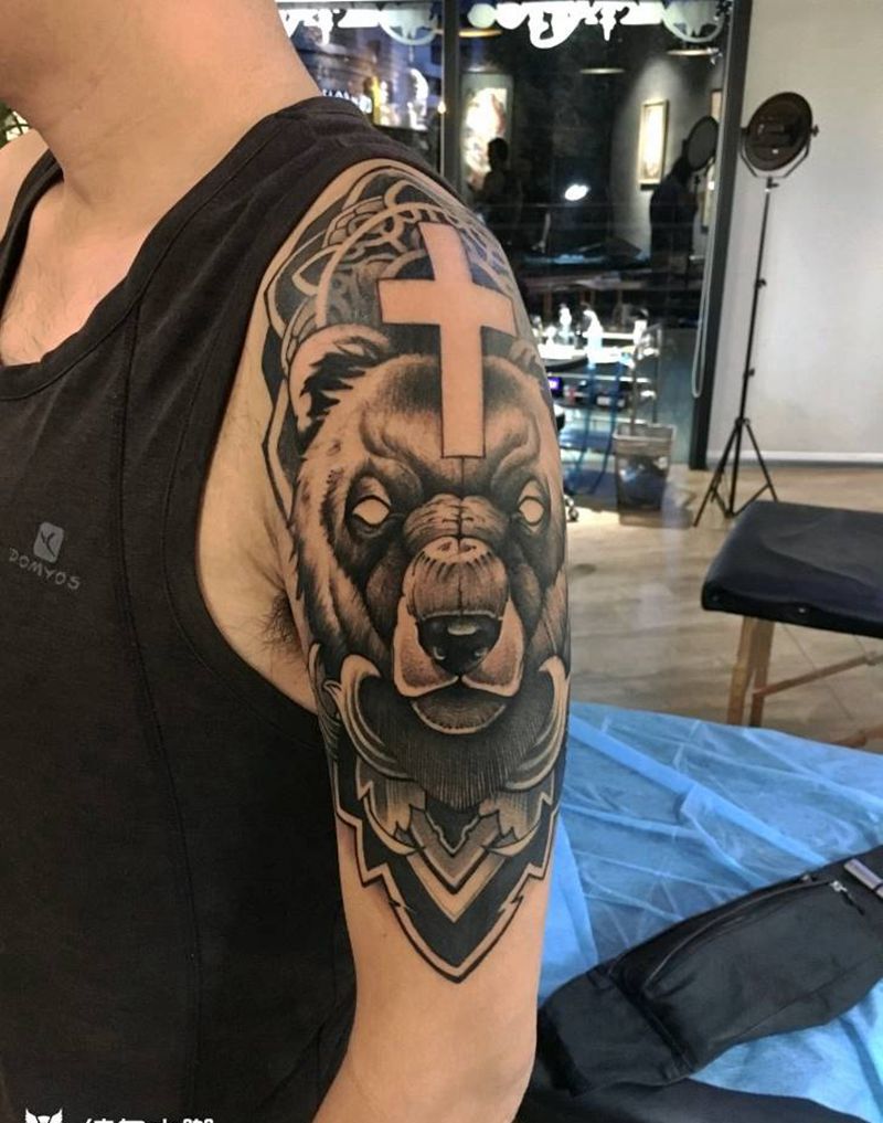 当前位置: 首页 >北京市纹身店-京都墨客刺青纹身图案>纹身/刺青/熊纹身纹身图片_手臂图腾欧美写实纹身图案