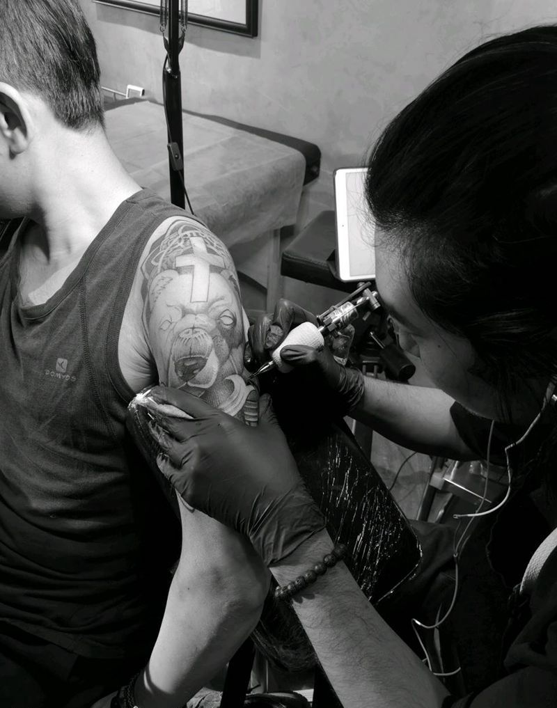 当前位置: 首页 >北京市纹身店-京都墨客刺青纹身图案>纹身/刺青/熊纹身纹身图片_手臂图腾欧美写实纹身图案